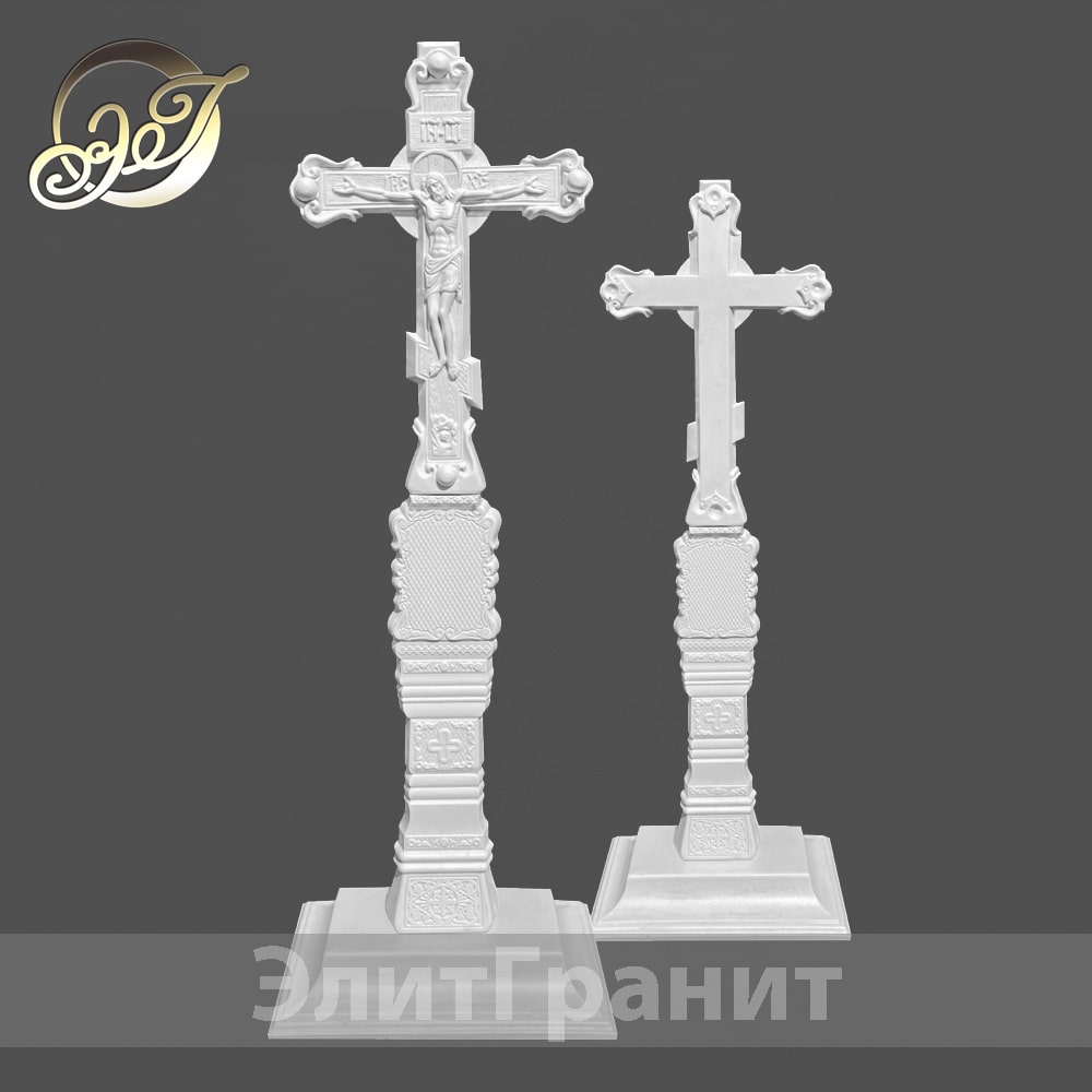 Крест МЛ-2 из литьевого мрамора, экологически чистого материал на основе натуральной мраморной крошки со связующей полиэфирной смолой и добавлением красителей. Прочность этого материала в разы выше прочности мрамора и сравнима с гранитом. Заказать Крест МЛ-2, а также получить грамотную консультацию по монтажу и вариантах художественного оформления вы можете в салонах памятников ЭлитГранит расположенных в городе Минске.