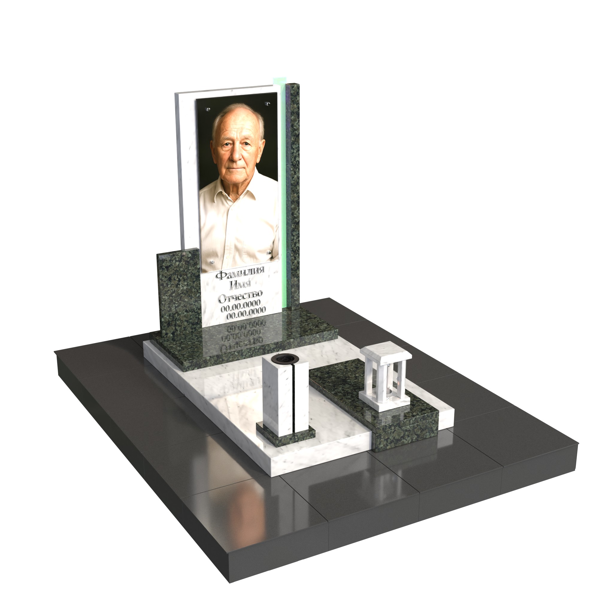 Памятник «Светлый путь» выполнен в современном архитектурном стиле и подчёркивает чистоту, достоинство и благородство. Гармоничное сочетание светлого камня и выразительного зелёного оттенка придаёт композиции ощущение покоя и жизненной силы.