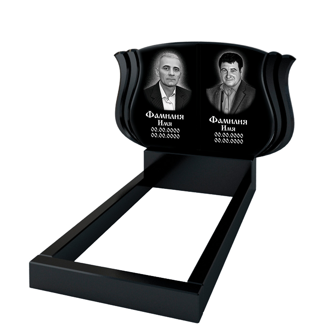 Памятник из габбро-диабаза с горизонтальной стелой — семейный комплект