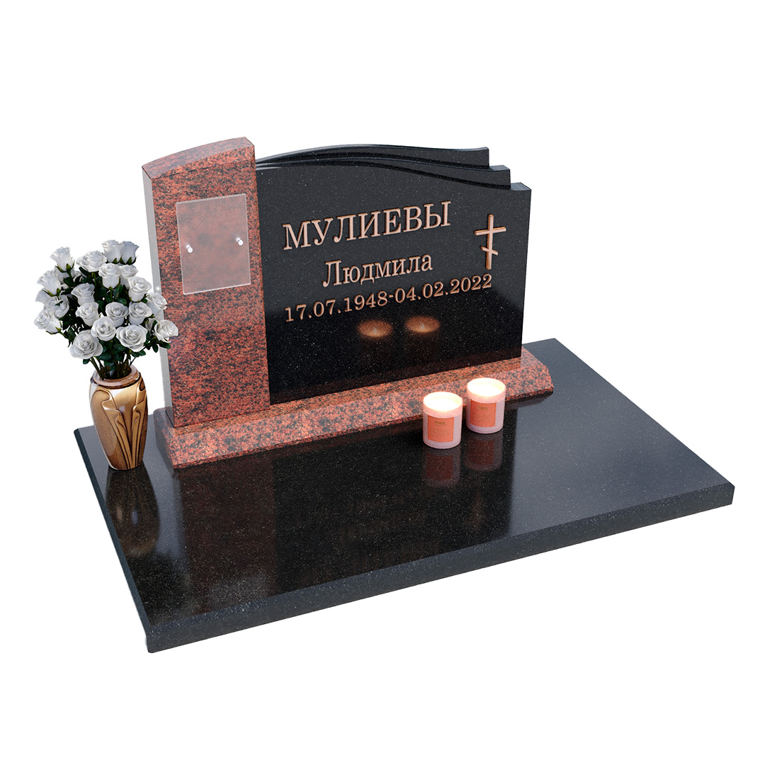 Стела 2 шт + постамент 1 шт + цветник комбинированный + заготовка 40-30-5 под фото Мансуровский гранит