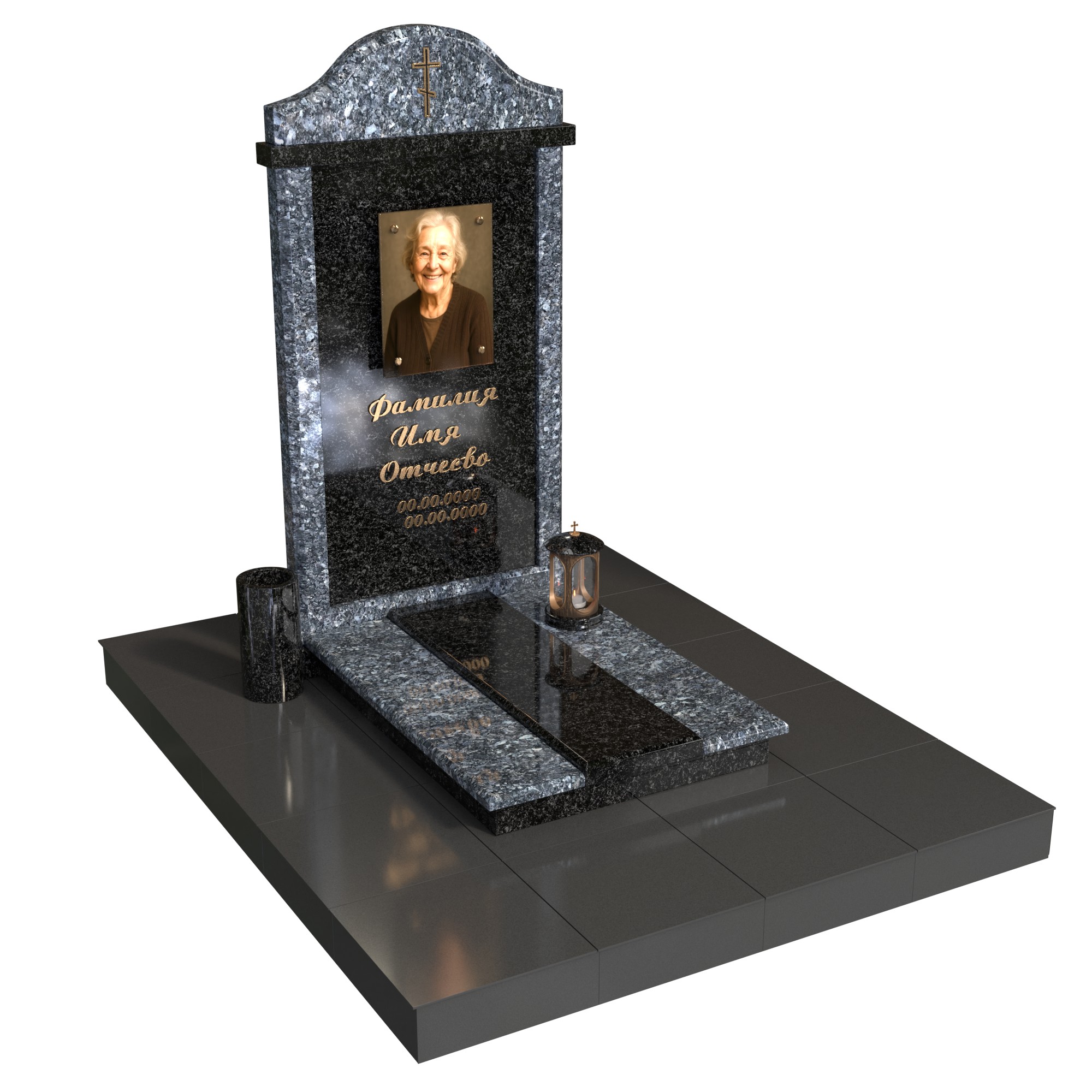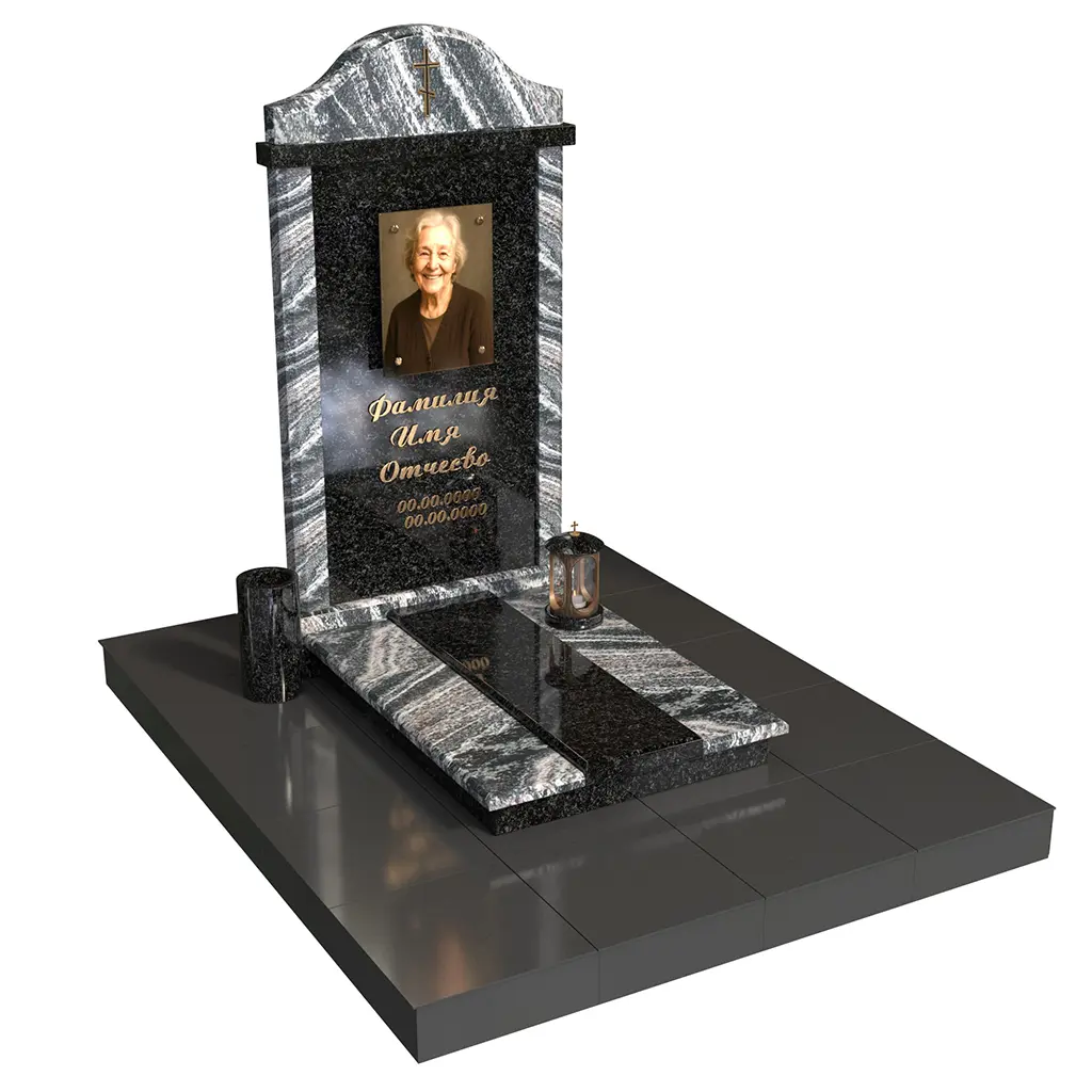 Парный памятник «Столп семьи» — элегантный семейный комплекс для двух захоронений. Две строгие стелы объединены центральной колонной с крестом, символизирующей опору и единство. В каждой стеле — фотопортрет на стекле и индивидуальная гравировка. Фигурное основание и аккуратная плита придают комплексу завершённый, ухоженный вид; предусмотрено место под лампаду и аксессуары.