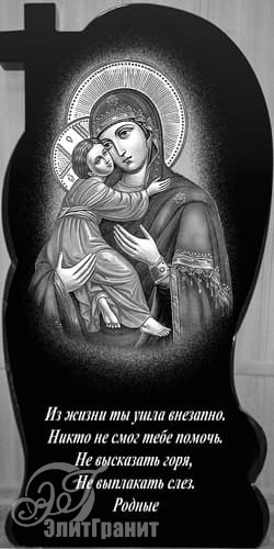 Важно обратить внимание, что наиболее гармонично гравировка выглядит именно на черном граните (см. виды гранита). Изображение на фактурных либо светлых камнях будет сливаться с фоном, теряться в рисунке самого гранита. Поэтому при заказе памятника из цветного гранита рекомендуется подобрать другие варианты художественного оформления.